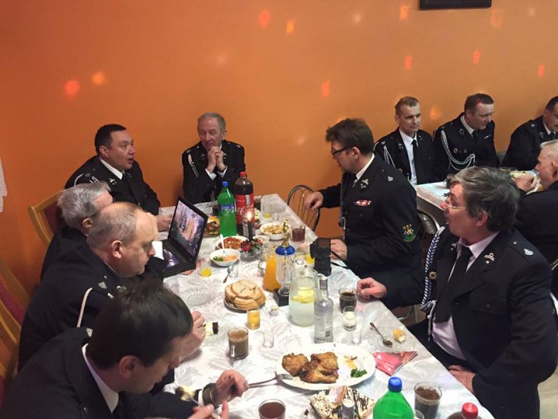 Po życzeniach i podzieleniu się opłatkiem wszyscy zasiedli do wspólnego stołu. Był to czas na wymianę doświadczeń strażackich i na zwykłe koleżeńskie rozmowy.