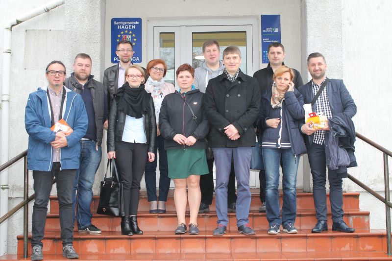 Wizyta rozpoczęła się od prezentacji Marcina Skonieczki, wójta gminy Płużnica, w trakcie której uczestnicy mieli okazję zapoznać się z ogólnymi informacjami na temat gminy. Wójt przedstawił także strategię rozwoju, zwracając uwagę na największą inwestycję w historii gminy, a mianowicie budowę Płużnickiego Parku Inwestycyjnego. Sekretarz gminy p. Magdalena Szczepanik podzieliła się z gośćmi informacjami na temat powstającej Strategii Rozwoju Kapitału Społecznego i Edukacji oraz sposobu wdrażania reformy oświaty. Następnie głos zabrała p. Elżbieta Wiśniewska, inspektor ds. współpracy z organizacjami pozarządowymi. Jej wystąpienie dotyczyło płużnickiego modelu współpracy władz gminy z trzecim sektorem. W dalszej części pracownik Urzędu Gminy – p. Marianna Zakrzewska omówiła zestaw działań, angażujących mieszkańców gminy Płużnica w kształtowanie swojego otoczenia. Uczestnicy wizyty studyjnej byli pod wrażeniem ilości i jakości metod współpracy w projekcie „Rewitalizacja w Gminie Płużnica”. Zebrani mieli również okazję usłyszeć o działaniach na rzecz promocji gospodarczej. Patrycja Murawska, asystent wójta gminy Płużnica przedstawiła prezentację na temat kreowania wizerunku gminy oraz współpracy z inwestorami.
