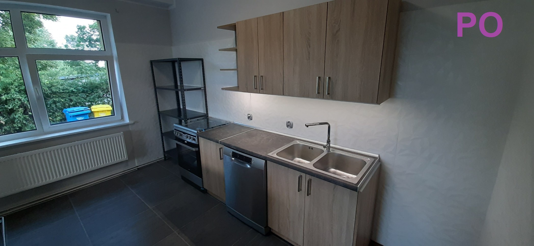 W ramach adaptacji pomieszczeń powstała kuchnia, która dodatkowo została wyposażona w meble kuchenne oraz sprzęt AGD.