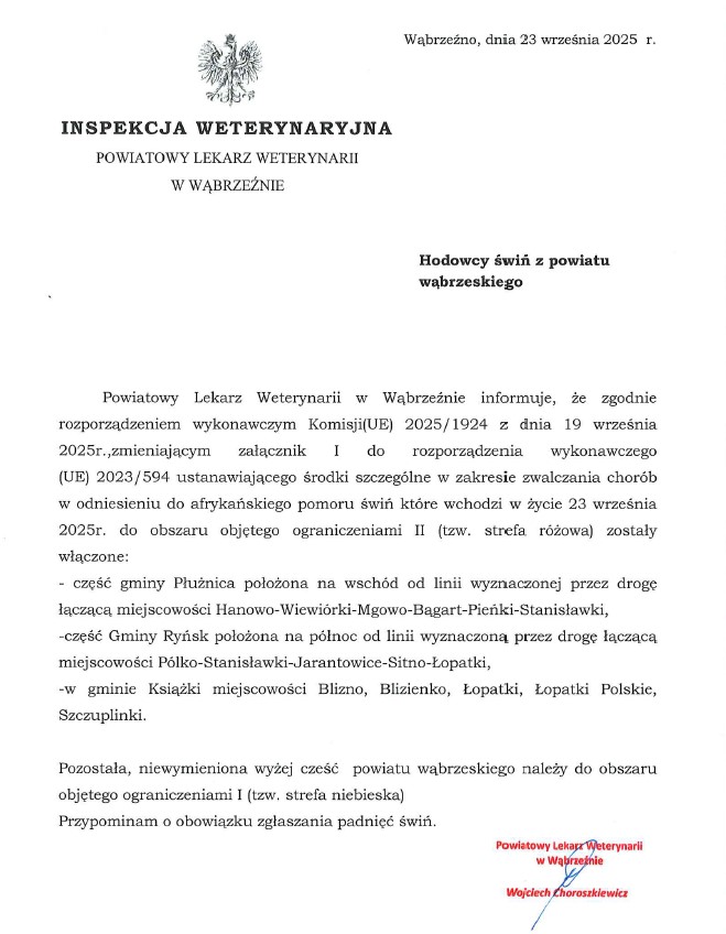 Informacja dla hodowców świń powiatu wąbrzeskiego