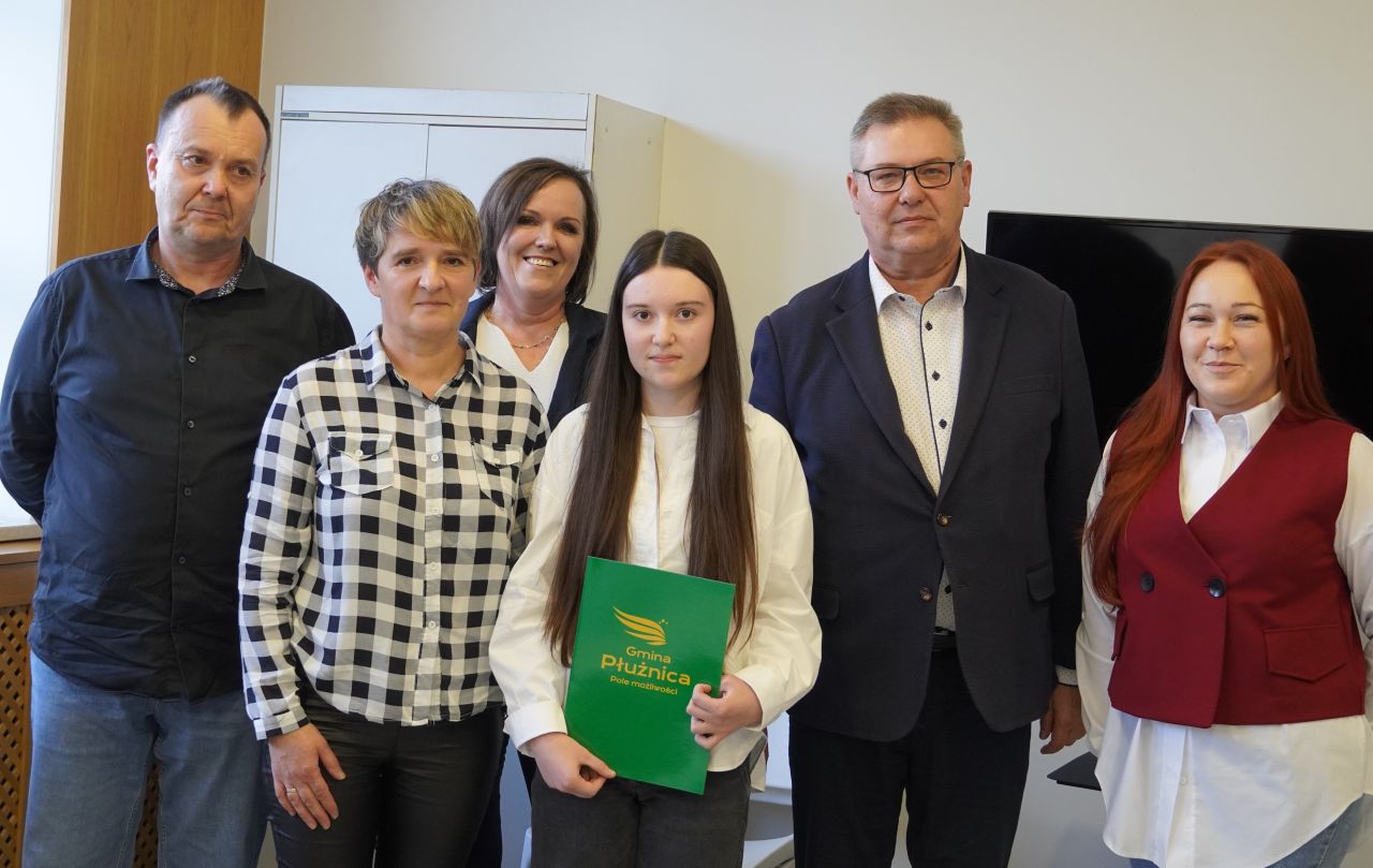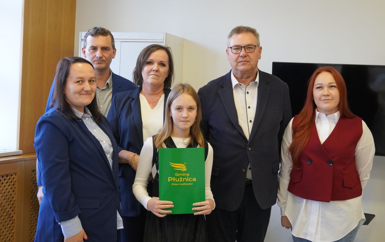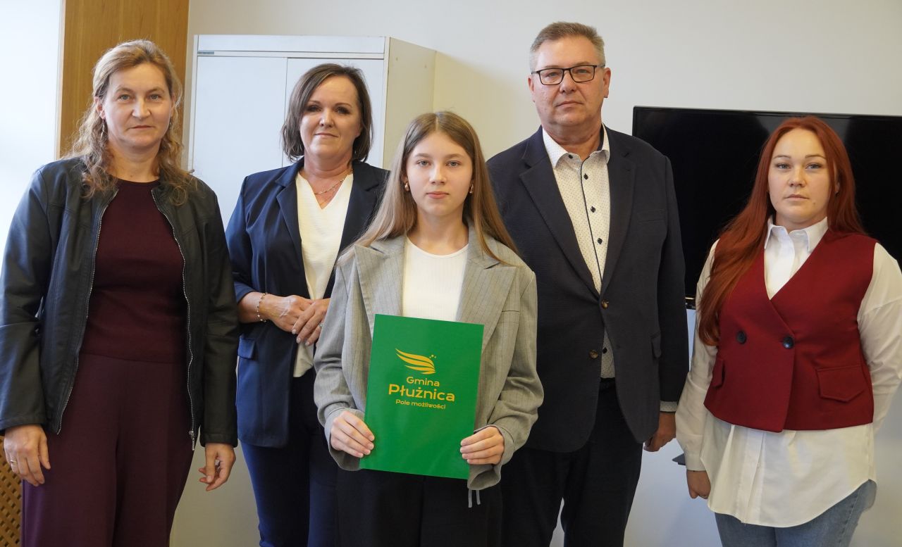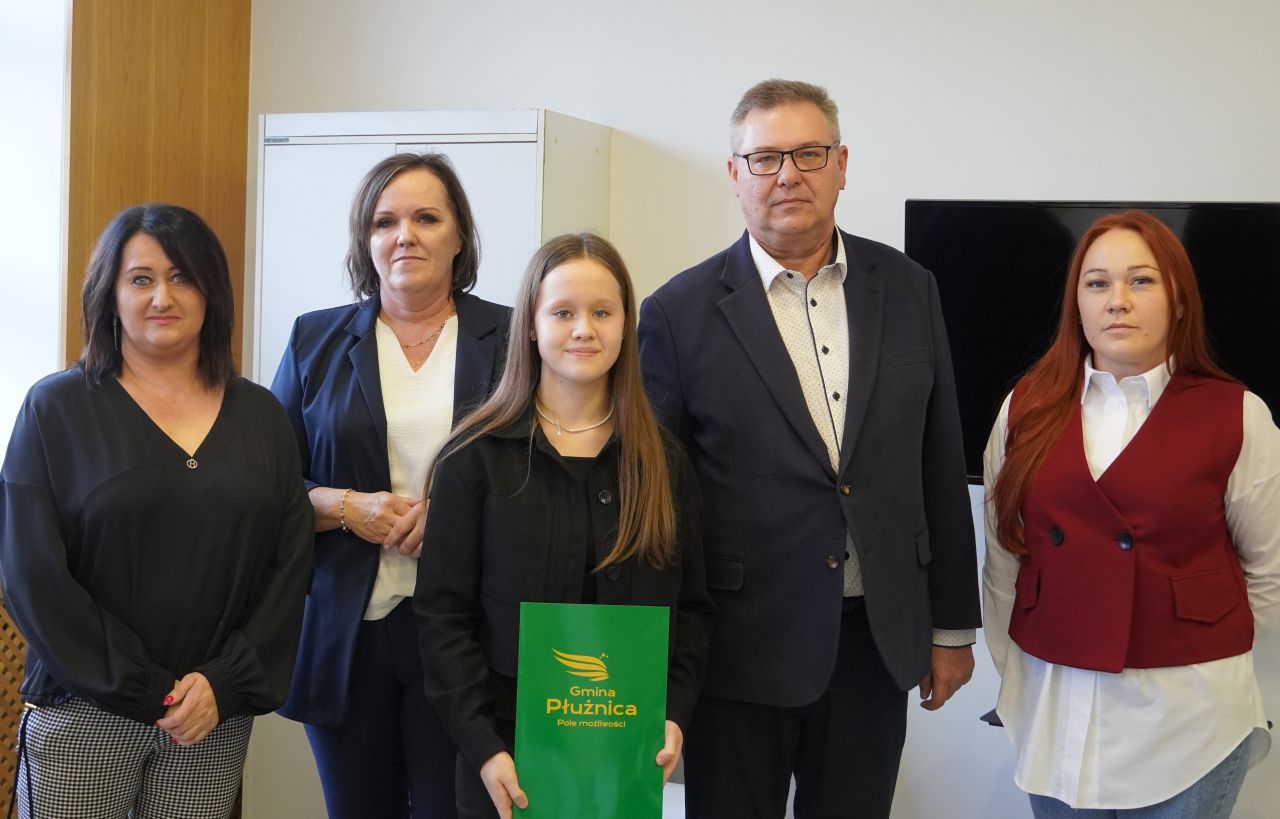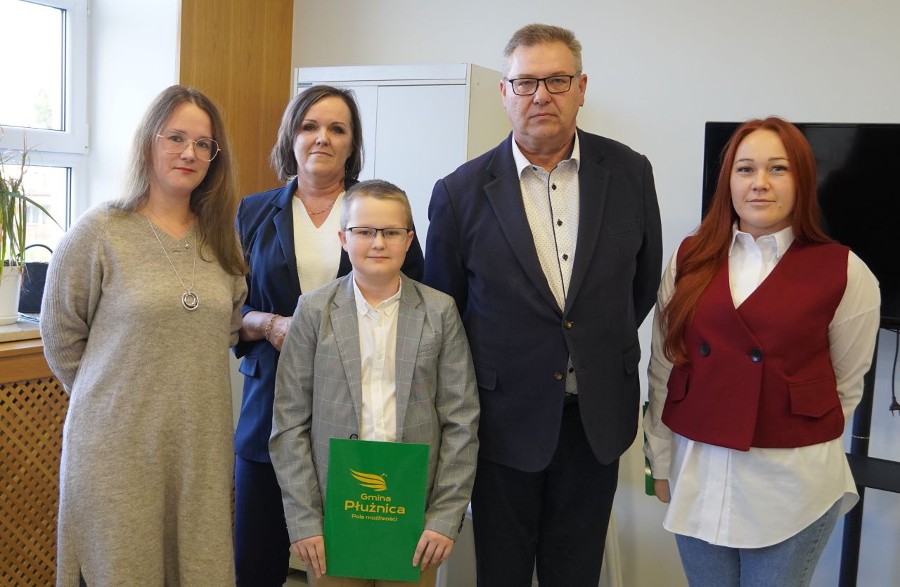 We wtorek, 14 października 2025 roku Wójt Gminy Płużnica Pan Maciej Puchała, w towarzystwie Przewodniczącej Rady Gminy Pani Doroty Wąż, oraz Przewodniczącej Komisji do Spraw Społecznych Pani Karoliny Piątek, w sali posiedzeń urzędu gminy wręczyli nagrody stypendialne uzdolnionym uczniom. W uroczystości uczestniczyli również: Pani Paulina Właśniewska Dyrektor Zespołu Szkolno-Przedszkolnego oraz rodzice.