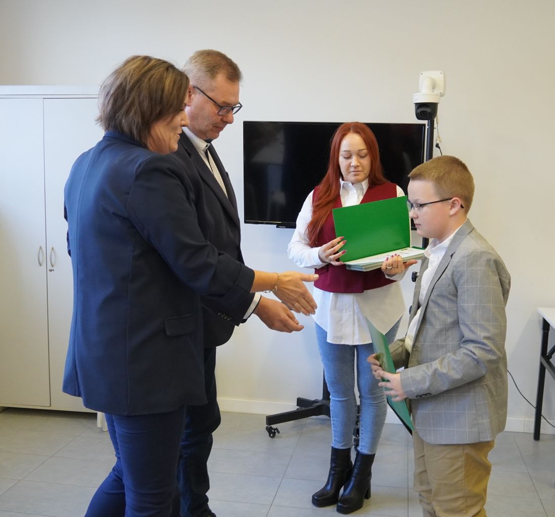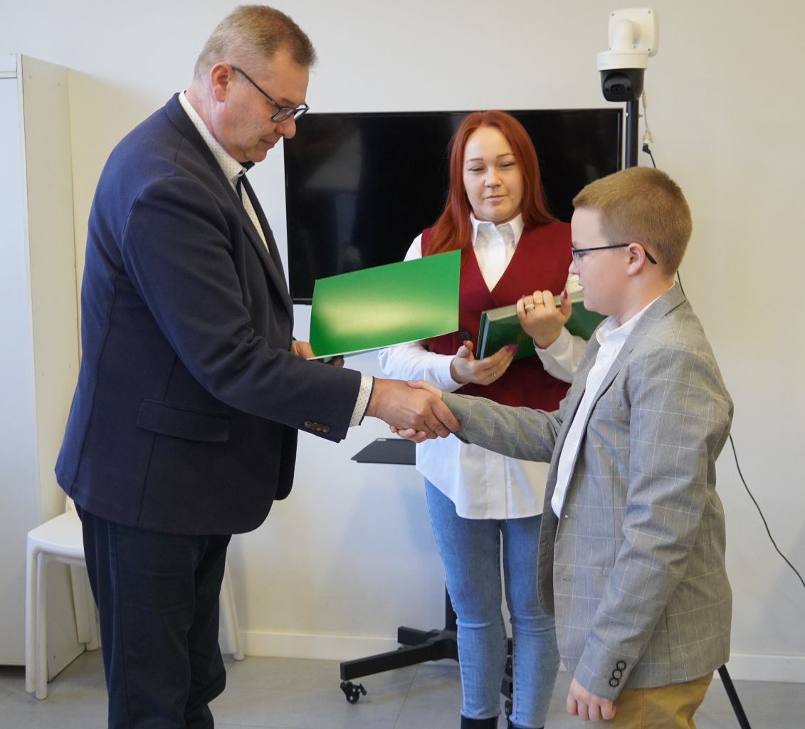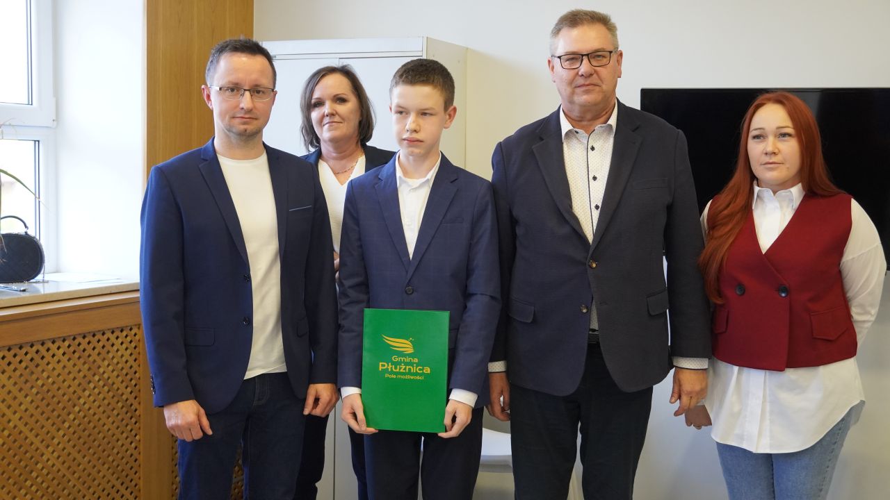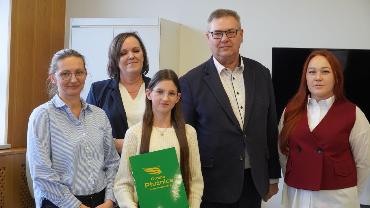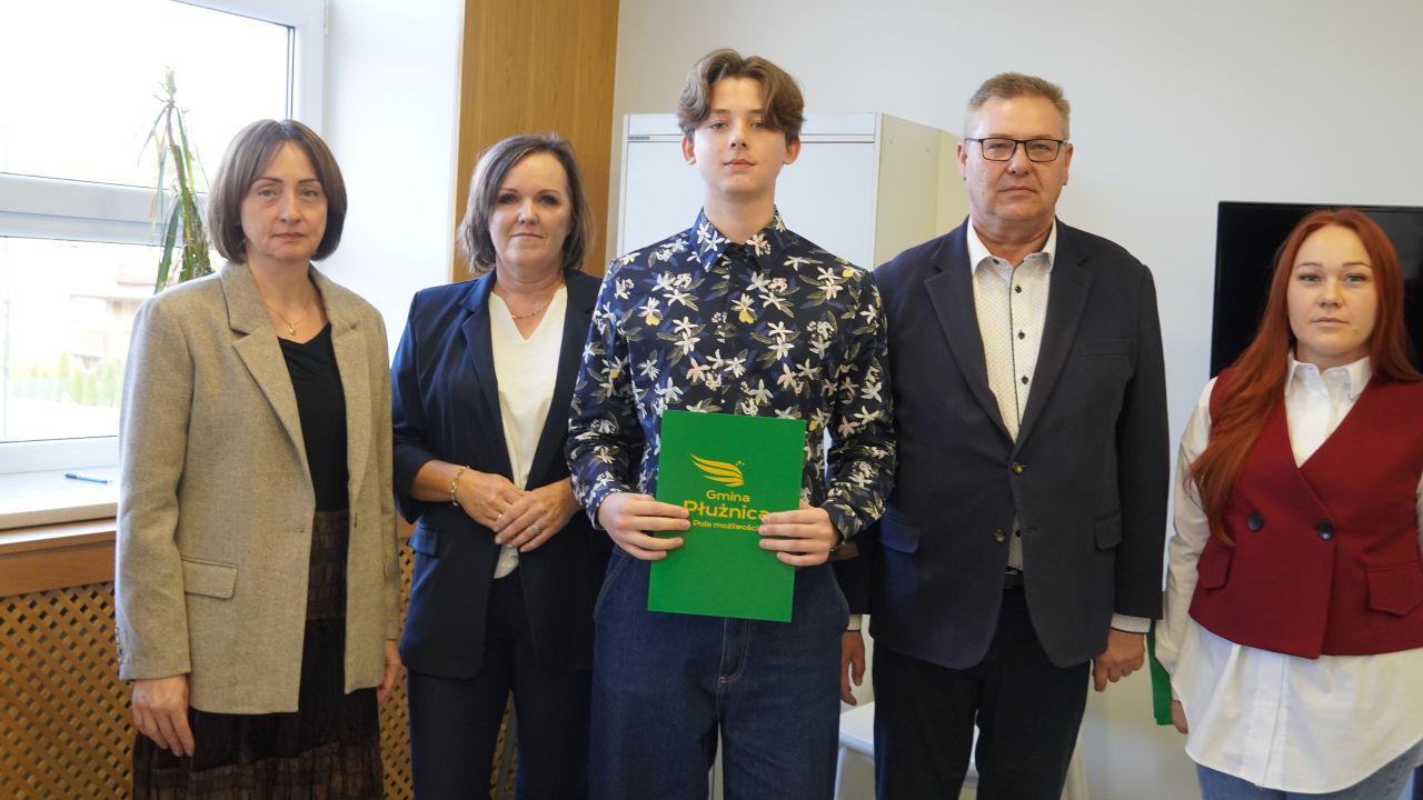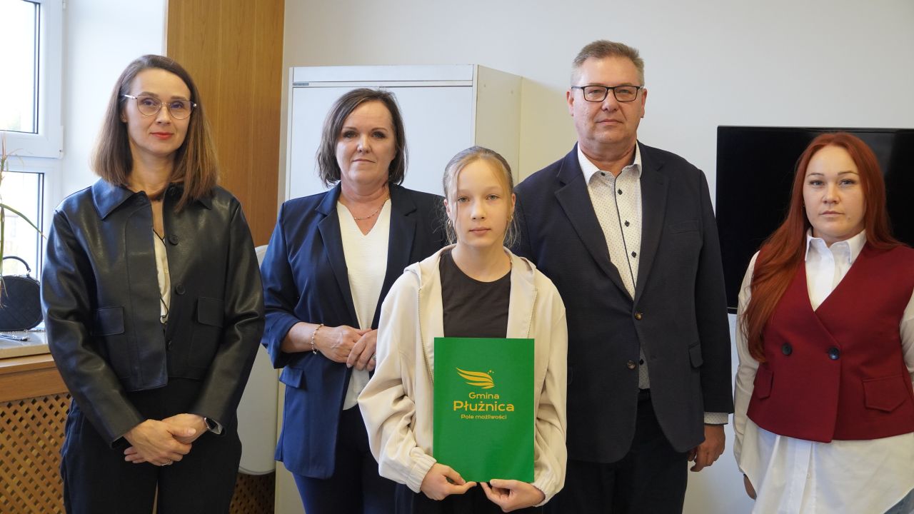 We wtorek, 14 października 2025 roku Wójt Gminy Płużnica Pan Maciej Puchała, w towarzystwie Przewodniczącej Rady Gminy Pani Doroty Wąż, oraz Przewodniczącej Komisji do Spraw Społecznych Pani Karoliny Piątek, w sali posiedzeń urzędu gminy wręczyli nagrody stypendialne uzdolnionym uczniom. W uroczystości uczestniczyli również: Pani Paulina Właśniewska Dyrektor Zespołu Szkolno-Przedszkolnego oraz rodzice.