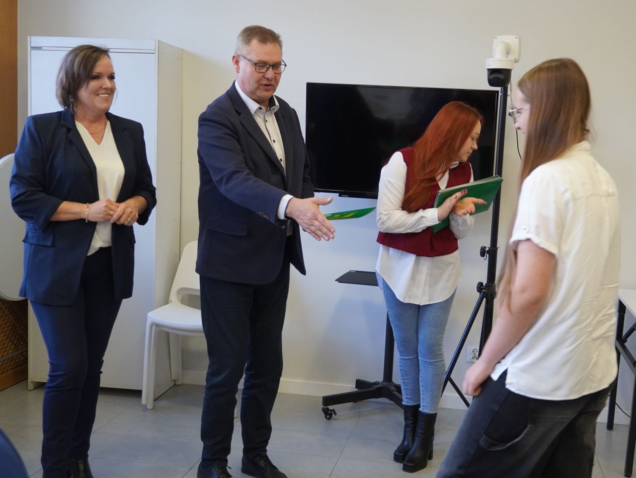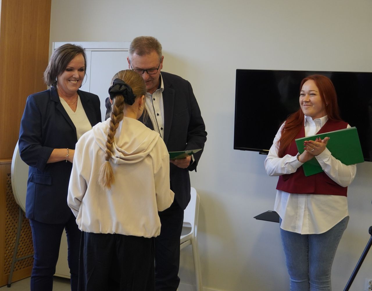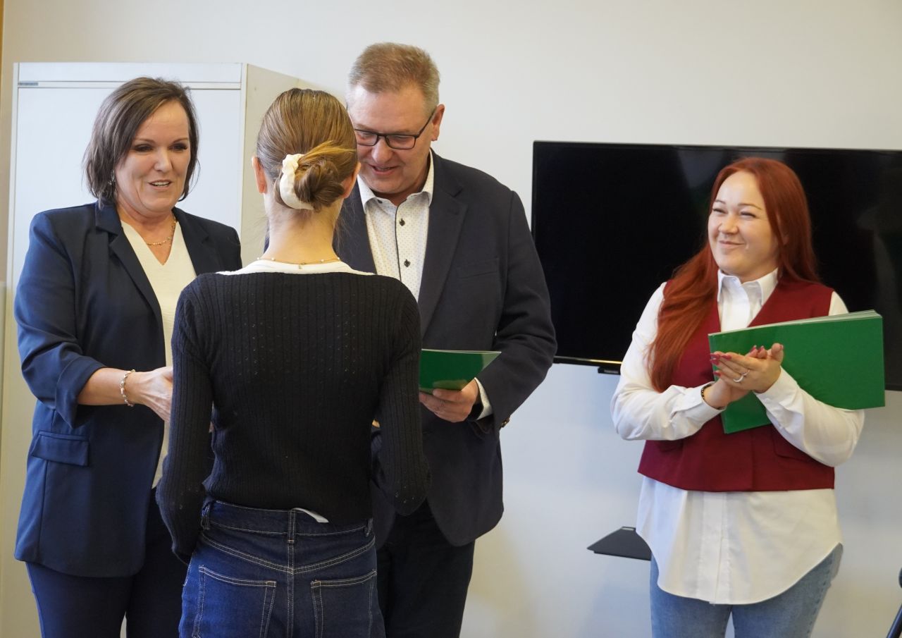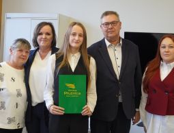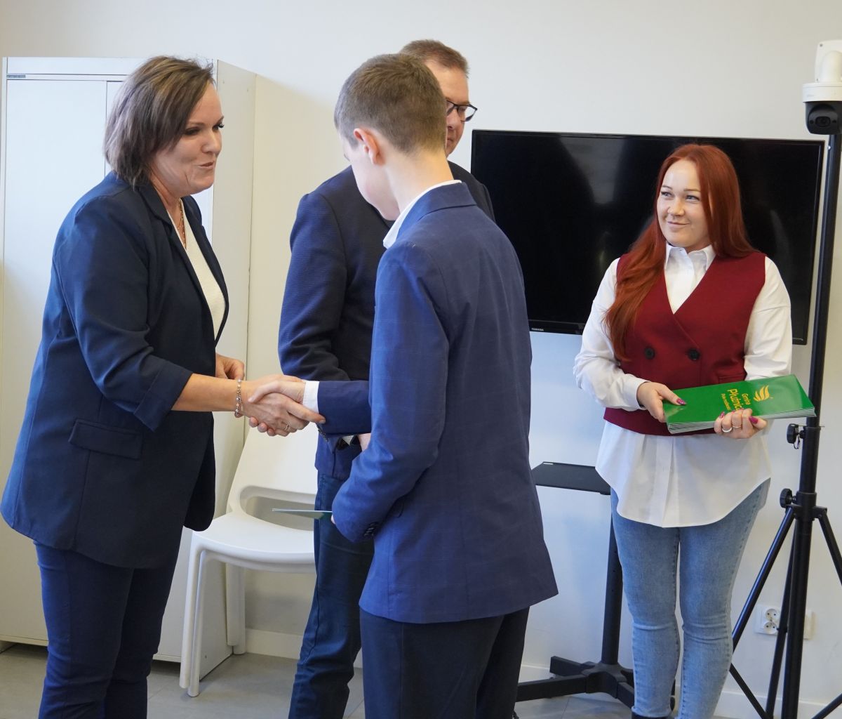 We wtorek, 14 października 2025 roku Wójt Gminy Płużnica Pan Maciej Puchała, w towarzystwie Przewodniczącej Rady Gminy Pani Doroty Wąż, oraz Przewodniczącej Komisji do Spraw Społecznych Pani Karoliny Piątek, w sali posiedzeń urzędu gminy wręczyli nagrody stypendialne uzdolnionym uczniom. W uroczystości uczestniczyli również: Pani Paulina Właśniewska Dyrektor Zespołu Szkolno-Przedszkolnego oraz rodzice.