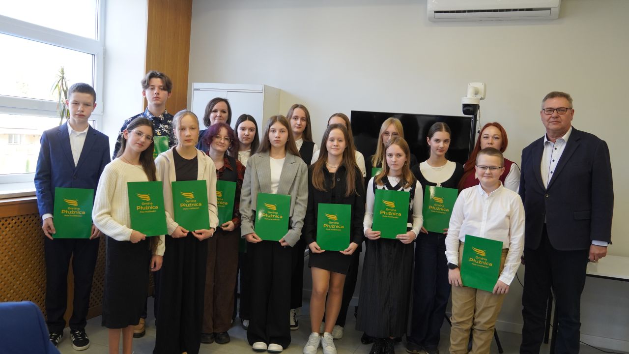 Do dnia 20 września 2025 roku można było składać wnioski o przyznanie stypendium Wójta Gminy Płużnica dla uczniów, którzy spełniają określone w regulaminie warunki. Łącznie do sekretariatu urzędu gminy wpłynęło 17 wniosków. Komisja Stypendialna, w skład której wchodzili: Wójt Gminy Płużnica Pan Maciej Puchała, Przewodnicząca Rady Gminy Pani Dorota Wąż, Przewodnicząca Komisji do Spraw Społecznych Rady Gminy Płużnica Pani Karolina Piątek oraz Dyrektor ZS-P w Płużnicy Pani Paulina Właśniewska, której posiedzenie odbyło się 25 września 2025 roku, po szczegółowym rozpatrzeniu wszystkich złożonych dokumentów przyznała 15 rocznych stypendiów dla uzdolnionych uczniów: