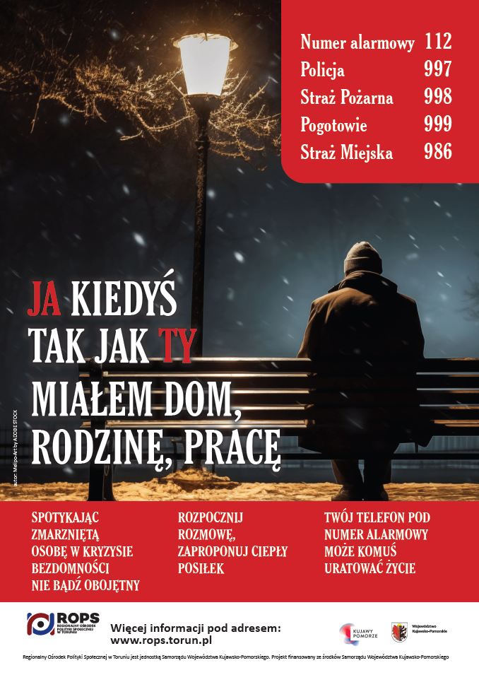 Jeśli w Twojej okolicy widzisz osobę bezdomną, nie bądź obojętny – pomóż, informując odpowiednie służby lub wspierając działania "Akcji Zima”.