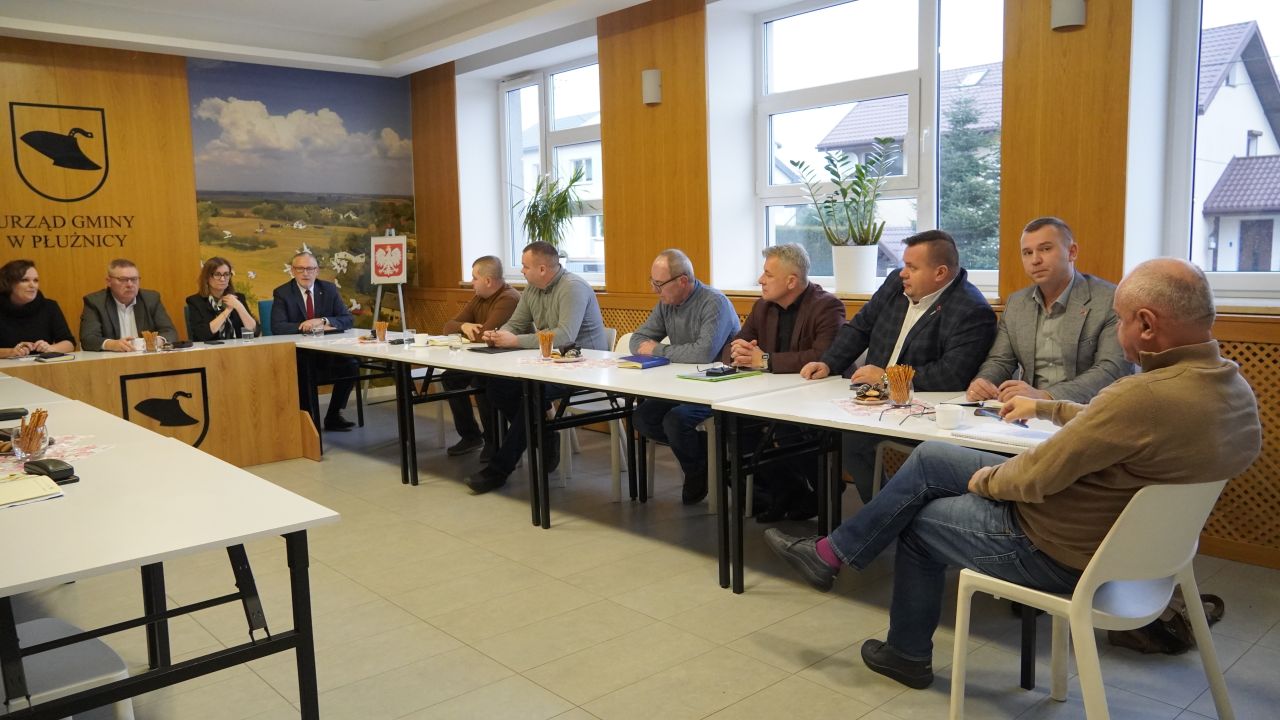 Dzisiaj tj. 15 grudnia 2025r., w Sali Posiedzeń Urzędu Gminy w Płużnicy odbyło się spotkanie dotyczące bieżącego utrzymania dróg powiatowych i ich remontowania. W spotkaniu uczestniczyli Starosta Powiatu Wąbrzeskiego Pan Krzysztof Maćkiewicz oraz Wicestarosta Powiatu Wąbrzeskiego Pani Gizela Pijar, Radni Powiatowi z terenu Gminy Płużnica, Radni Gminy Płużnica oraz Wójt Gminy Pan Maciej Puchała wraz z Zastępcą Wójta Gminy Płużnica Panem Leszkiem Kawskim.