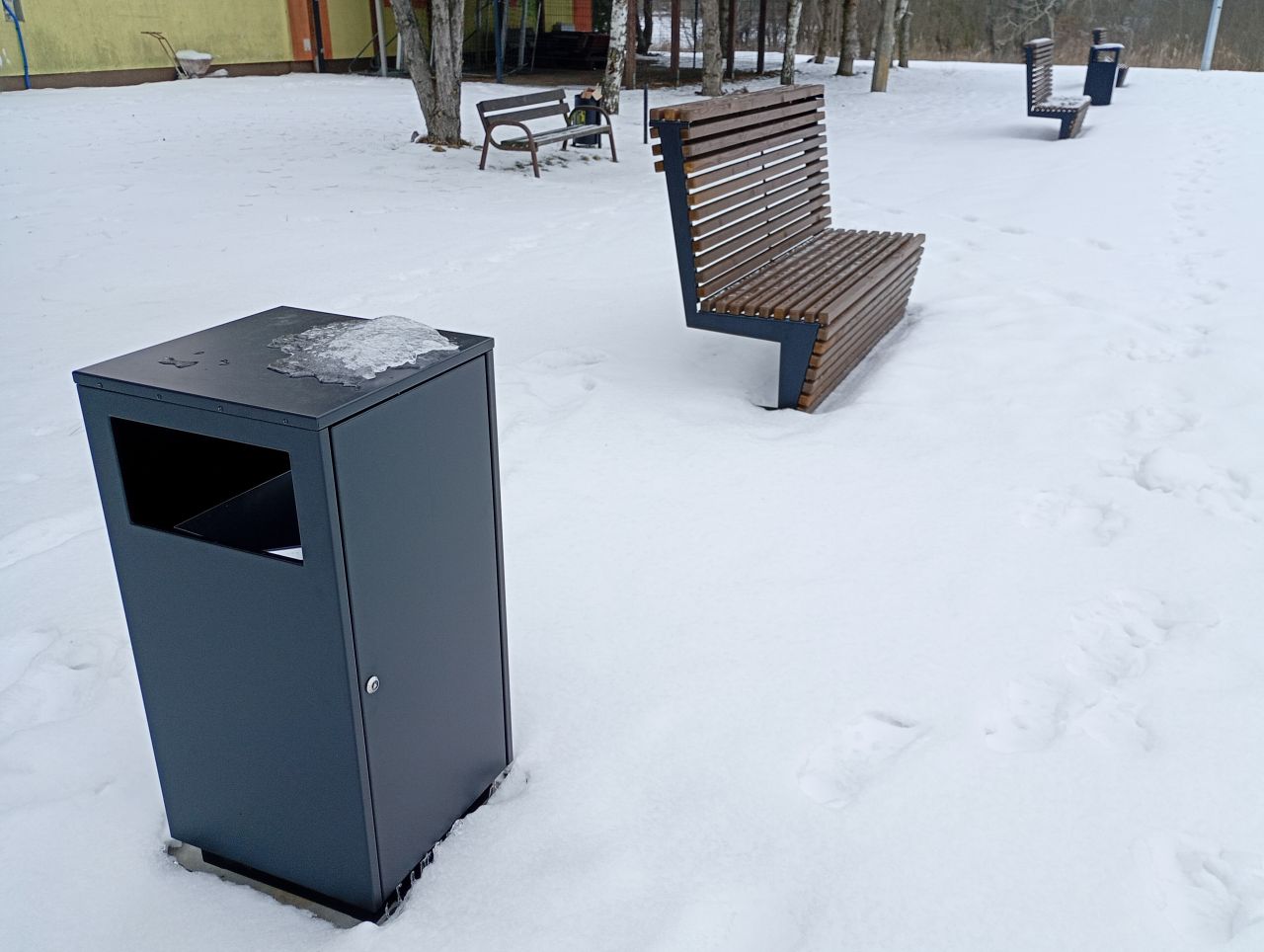 7) montaż elementów małej architektury (kosze na śmieci, stojaki na rowery),