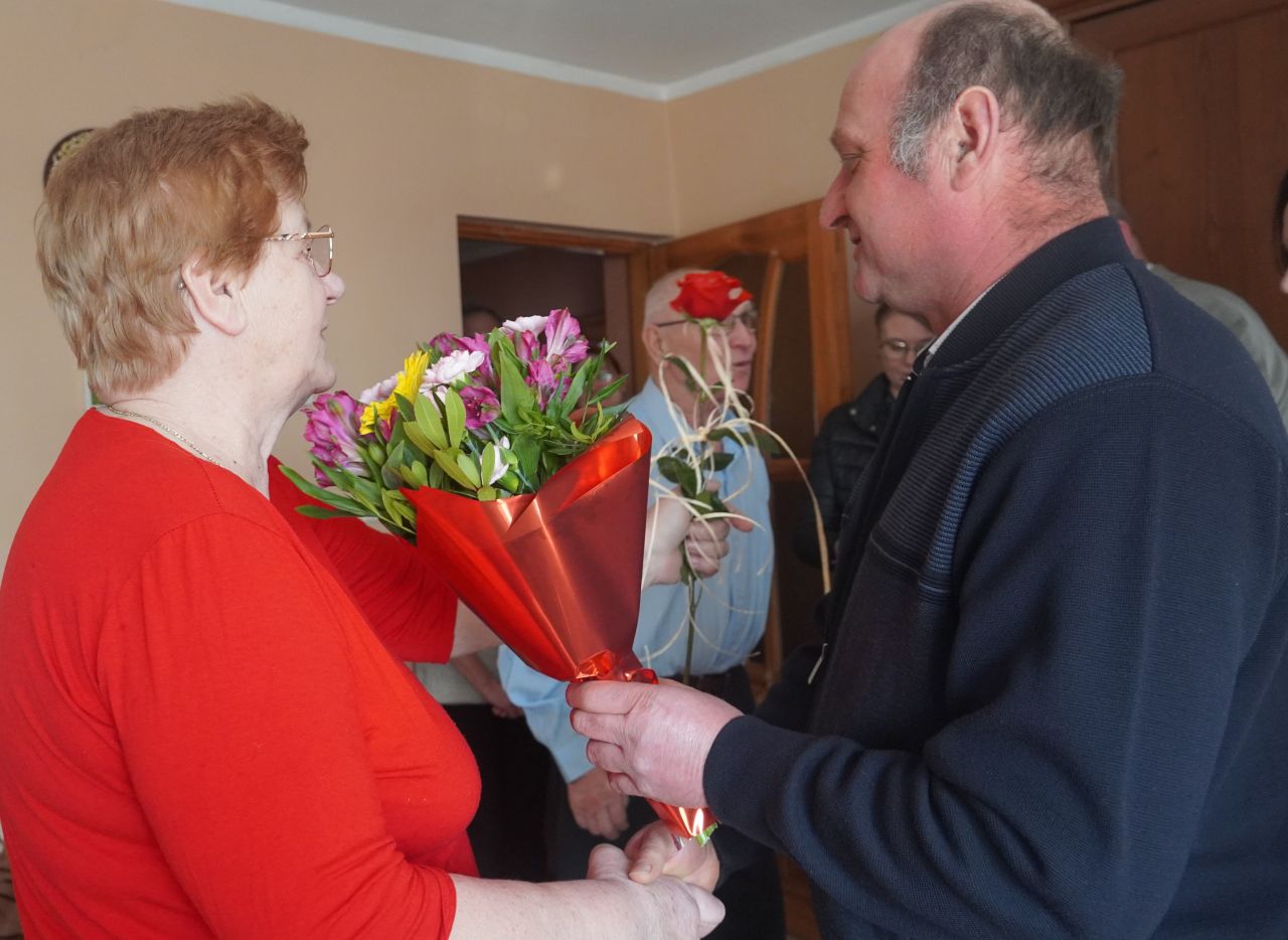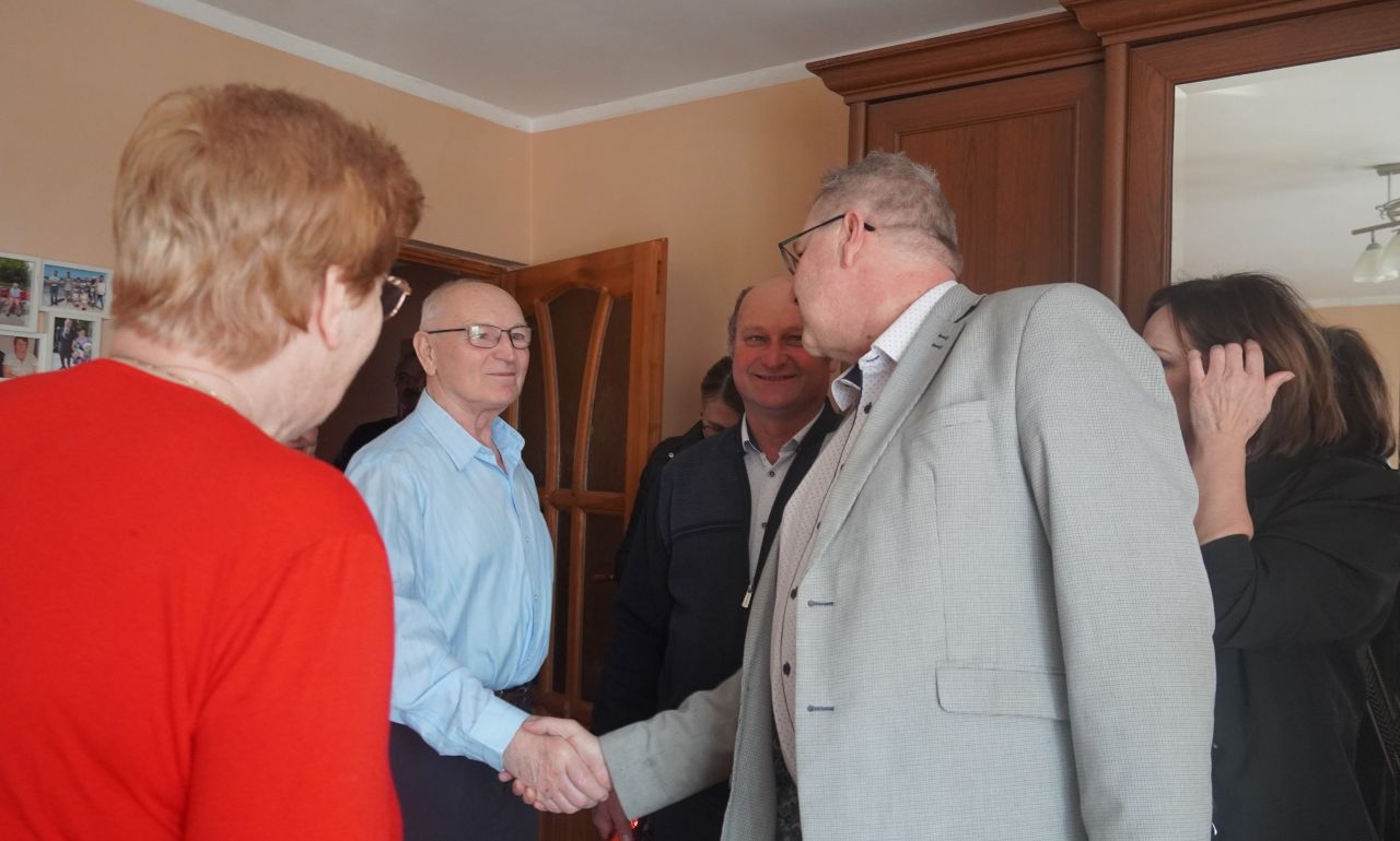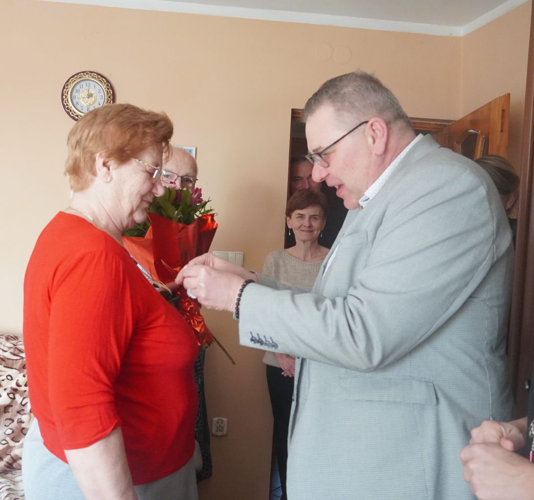 Z uwagi na to, że nie wszystkie pary mogły uczestniczyć w grudniowych obchodach Złotych Godów w gminie Płużnica, przedstawiciele samorządu: Wójt Gminy Maciej Puchała, Przewodnicząca Rady Gminy Dorota Wąż, sołtys wsi Nowa Wieś Królewska Leszek Ozorowski oraz Kierownik Urzędu Stanu Cywilnego Marlena Bartosik odwiedzili jubilatów w ich domu, aby przekazać gratulacje i życzenia.