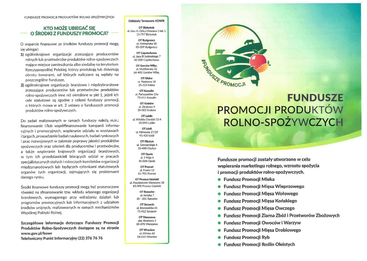 INFORMACJA KOWR DOTYCZĄCA FUNDUSZY PROMOCJI PRODUKTÓW ROLNOSPOŻYWCZYCH
